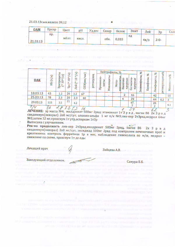 На сегодняшний день возникла острая необходимость пройти курс лечения препаратом «Эксиджад» в дозировке 500 мг (или его российский аналог «Десферал») в течение 2-х месяцев. Данное лекарство выводит из организма железо, уровень которого значительно возрастает при апластической анемии и поражает внутренние органы.