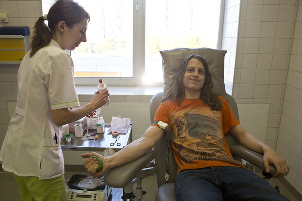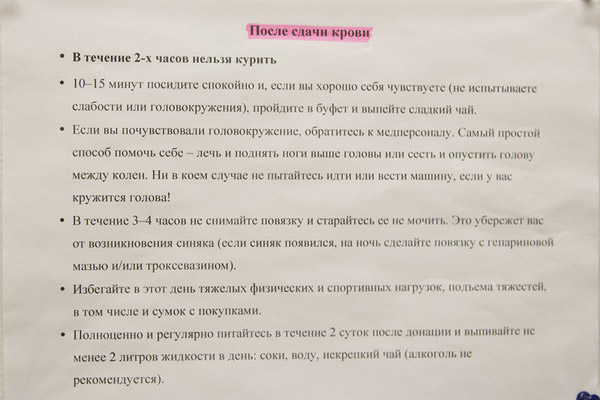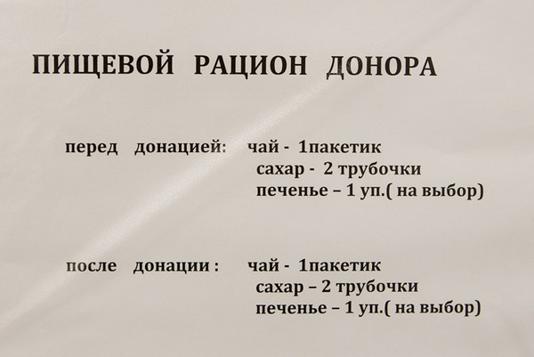 И инструкция висит для доноров - сколько и чего нужно выпить и съесть перед донацией.
