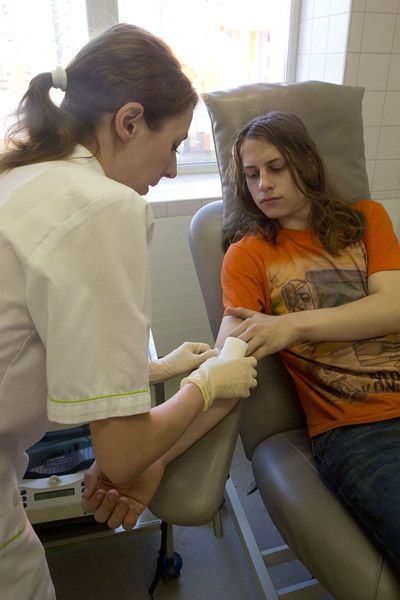 В регистратуре Диму сразу поблагодарили за решение стать донором, изучили паспорт, выдали анкету и липучки со штрих-кодами, которые предстояло наклеивать на пластиковые емкости с кровью и на документы.