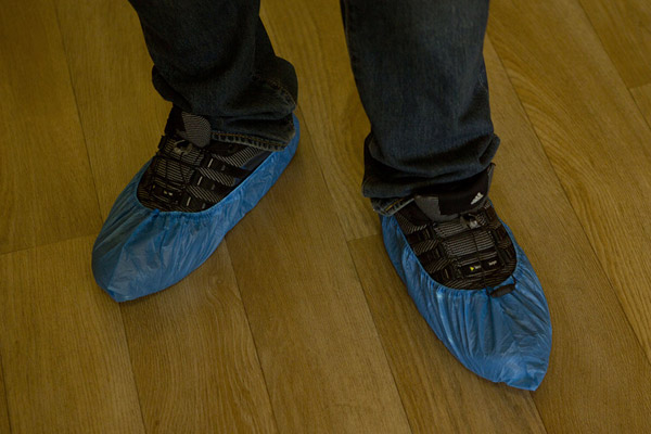 Волонтеры, дежурившие у входа, велели нам надеть бахилы и идти в регистратуру.
