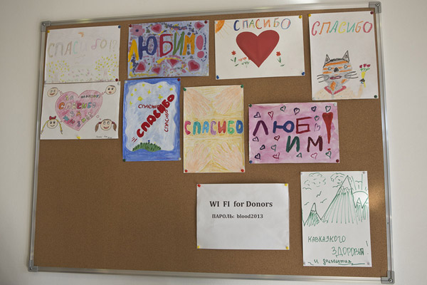 Пока он заполнял, я рассматривала благодарности донорам на стенях и самодельные плакаты - красиво и трогательно.