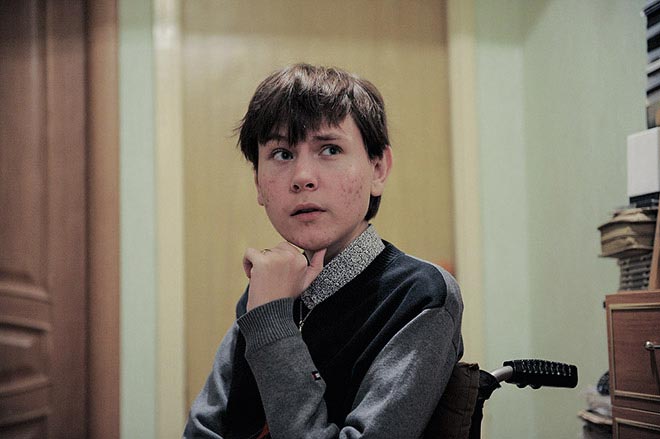 Мы останавливаемся у институтских ворот. Папа Алексей вывозит из машины коляску, сажает в нее Женю, и мы мчимся на пару — опаздываем. Институт — обычное пятиэтажное здание, с пандусом на крыльце, но без лифта. А первая пара — на третьем этаже. Папа поднимает Женю по лестнице — 6 пролетов по 13 ступеней, 45 килограммов в Жене и 4 — в коляске. После второго пролета даже крепкий Алексей останавливается, чтобы передохнуть. В этом году Женя поступил на первый курс Социального института МГПУ на направление «социально-культурная деятельность». Обычно люди на колясках получают высшее образование на дому или в специализированных институтах. «Я сразу сказал, что не пойду в специализированный институт, — говорит Женя. — Я не хочу, чтобы мне делали скидки, я хочу учиться наравне со всеми и получать ту же программу. Я поступал на режиссуру в несколько вузов. В одном со мной всего пять минут поговорили по делу, а потом 25 минут объясняли, почему меня не могут принять. Все сводилось к тому, что я на коляске: «это такая ответственность, мы не можем взять ее на себя». А в МГПУ приняли хорошо. Я даже не подавал документы на льготные места. Это важно для самоощущения — что же я, не мужик, что ли? Что же, у меня таланта нет?» Сцену Женя любит с детства — он поет, ведет концерты, сейчас взялся за свою первую театральную постановку. «Сцена — это пространство, свободное от барьеров, — может, за это я ее и люблю. Для большинства людей бытовые проблемы — как выйти из дома, как сходить в туалет — это ерунда, а выйти на сцену перед большой аудиторией — это адреналин, взрыв эмоций. А для меня наоборот. На сцене я себя чувствую гораздо комфортнее, увереннее, чем в повседневной жизни, когда я не могу передвигаться сам. На сцене я ощущаю себя самодостаточной личностью». Женя единственный студент на коляске в этом институте. Администрация помогла, как смогла: во вторник, пятницу и понедельник группа Жени учится только на первом этаже. В остальные дни однокурсники носят Женю по лестнице. «Не хочешь просить никого — сиди дома, — рассуждает Женя. — Меня это никогда не останавливало». Сегодня вторая пара на первом этаже, Жене нужно спуститься. В его группе всего один парень, но он сегодня не пришел.