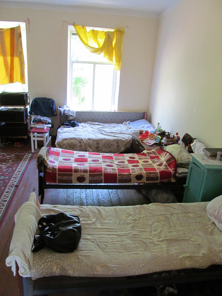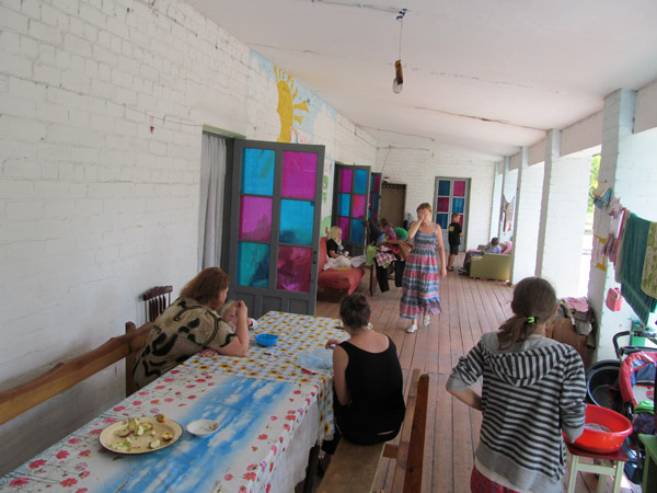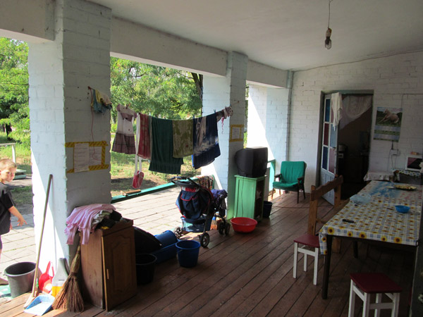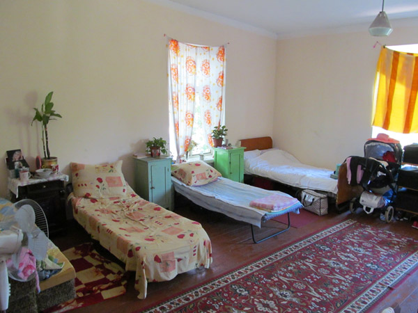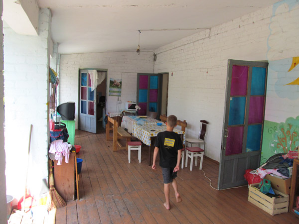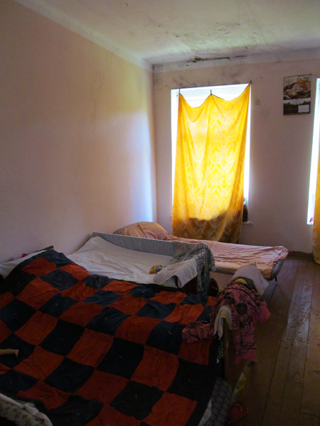 В общем, условия там не ахти, но люди благодарны и за это! Живут по несколько семей, в комнате – 6-8 человек. Проблема в том, что на носу – осень и похолодание, а помещения совершенно не предназначены для проживания в холодное время года – нет отопления, входные двери – стеклянные, с щелями, потолки во многих местах протекают.