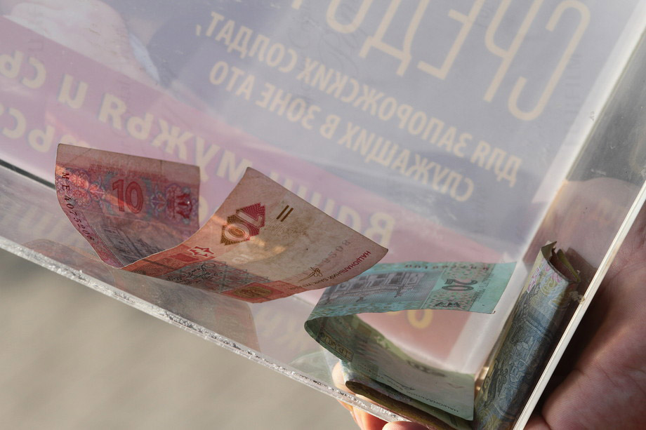 После непродолжительной беседы женщина таки положила нам в коробочку 20 гривен. Кстати, в разговоре выяснилось, что пенсия у нее небольшая — только 1200 гривен. «Но кто, если не мы, поможет нашим защитникам», — сказала нам напоследок пенсионерка. Потом в нашей коробочке оказалась еще десятка, и тоже от женщины.