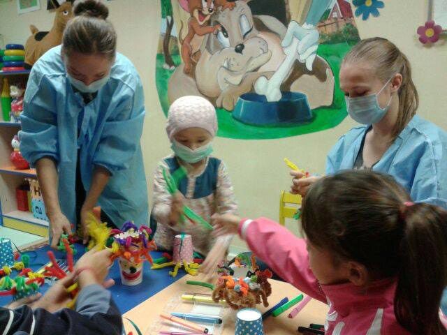 ля работы с детьми так же нужно владеть специальными приемами (арт-терапия, сказкотерапия), иметь специальное оборудование (сенсорные комнаты, игрушки, "песочницы"). Очень важно правильно организовывать игровой досуг в условиях стационара. Проведение различных мероприятий праздничных и, конечно, дней рождениий. В этом нам очень помогают наши волонтеры, которые выполняют огромную работу в данном направлении. В рамках нашего Фонда есть Проект "Исполнение желаний" - мы даем детям возможность загадывать желания, мечты…Они самые разнообразные - приобретение гаджетов (телефоны, планшеты, компьютеры), встреча с известными артистами и спортсменами, makeup – преображения, поездки-экскурсии в горы, театр, цирк.