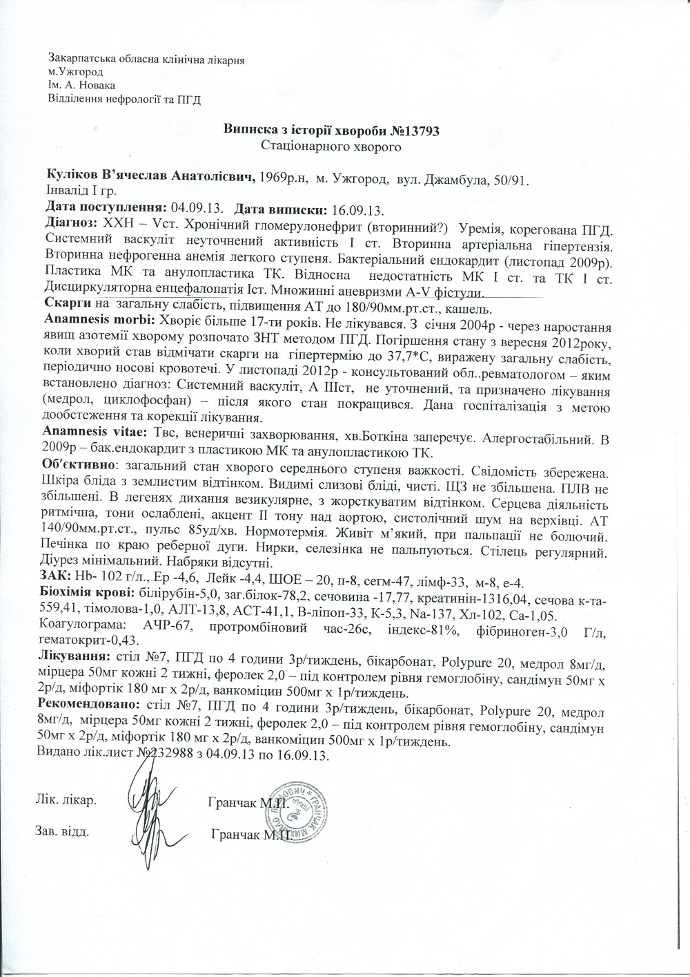 Диагноз: хроническая почечная недостаточность.