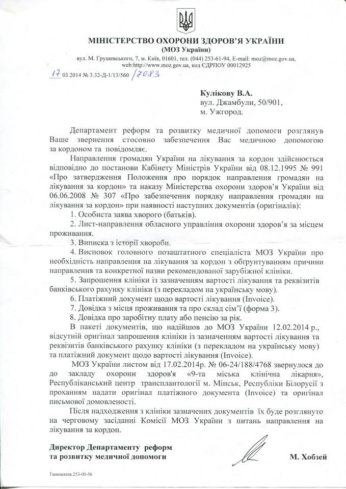 Еще до вчерашнего дня у нас была какая-то надежда хоть маленькая но была .То после вчерашнего дня жизнь остановилась.. Если до вчерашнего дня МОЗ бралось оплатить операцию и то только на словах , то уже вчера сказали что в связи с событиями на востоке денег нет. Жизнь потеряла смысл, она просто остановилась.