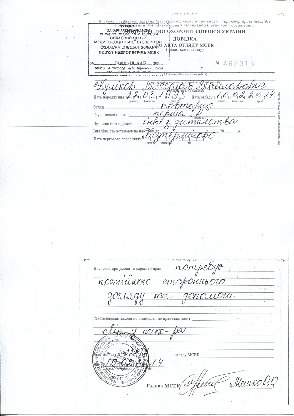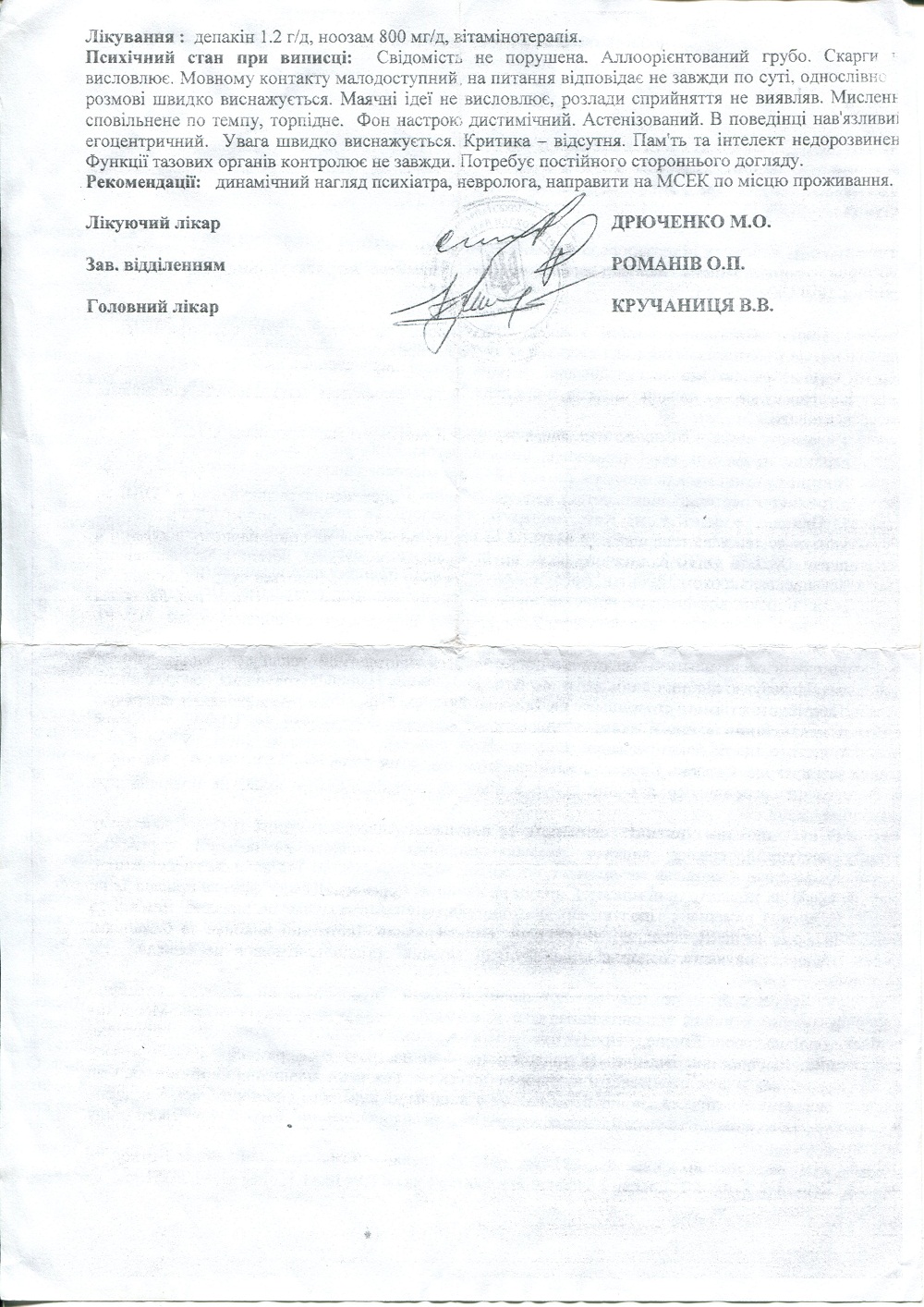 Выписка с больницы: стр.1, стр.2