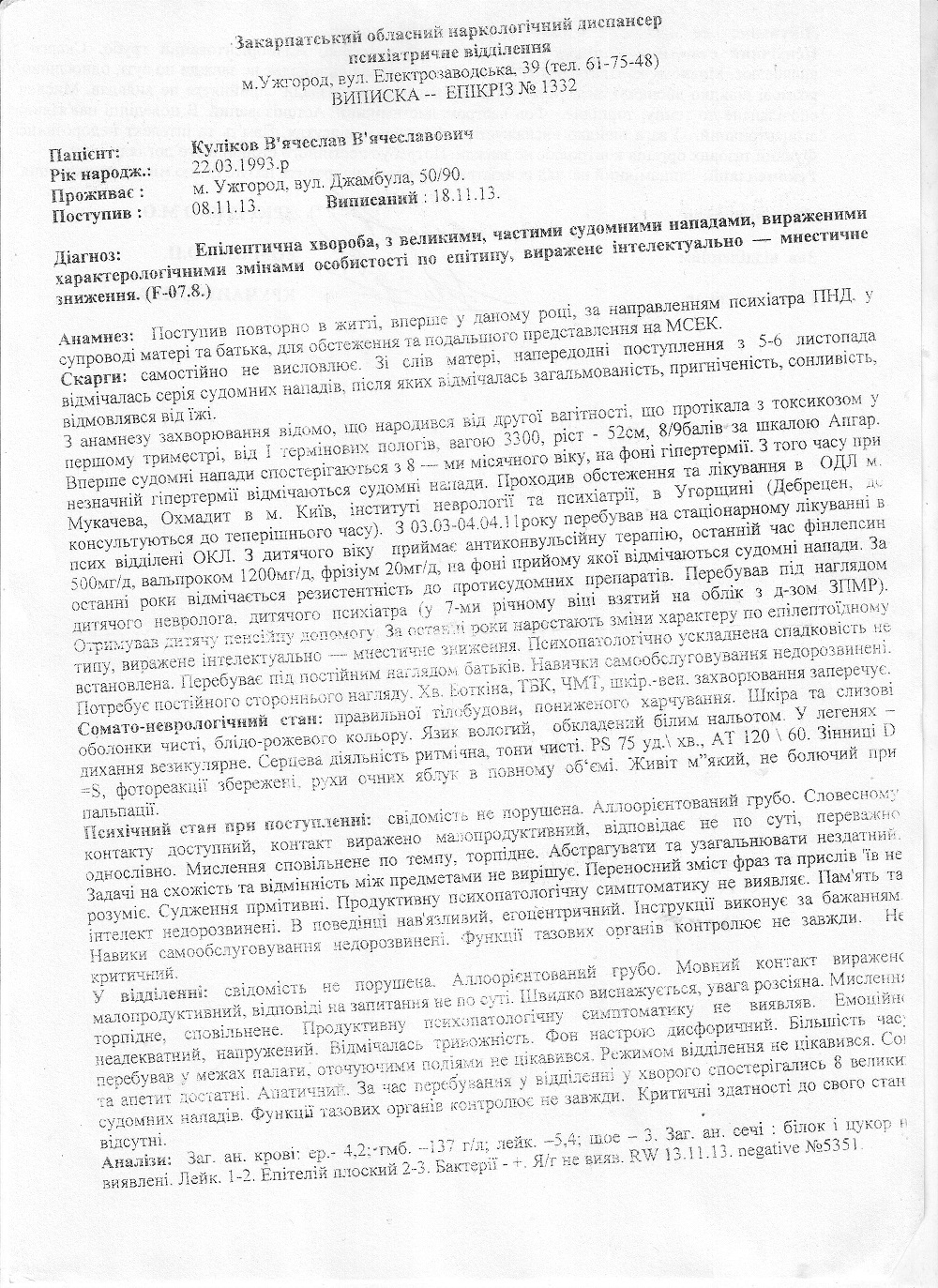 Новости о лечении Куликова Вячеслава