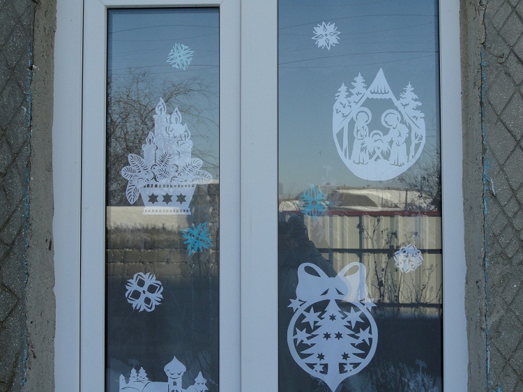 А ещё, я хочу показать вам, как у нас дома украшены окна к праздникам. Идея с вытынанками - моя, а осуществил её, конечно, Серёжа! И такие же красивые, он вырезал мне на работу - в детский сад! У него такие золотые руки, и увы, такая тяжелая судьба..