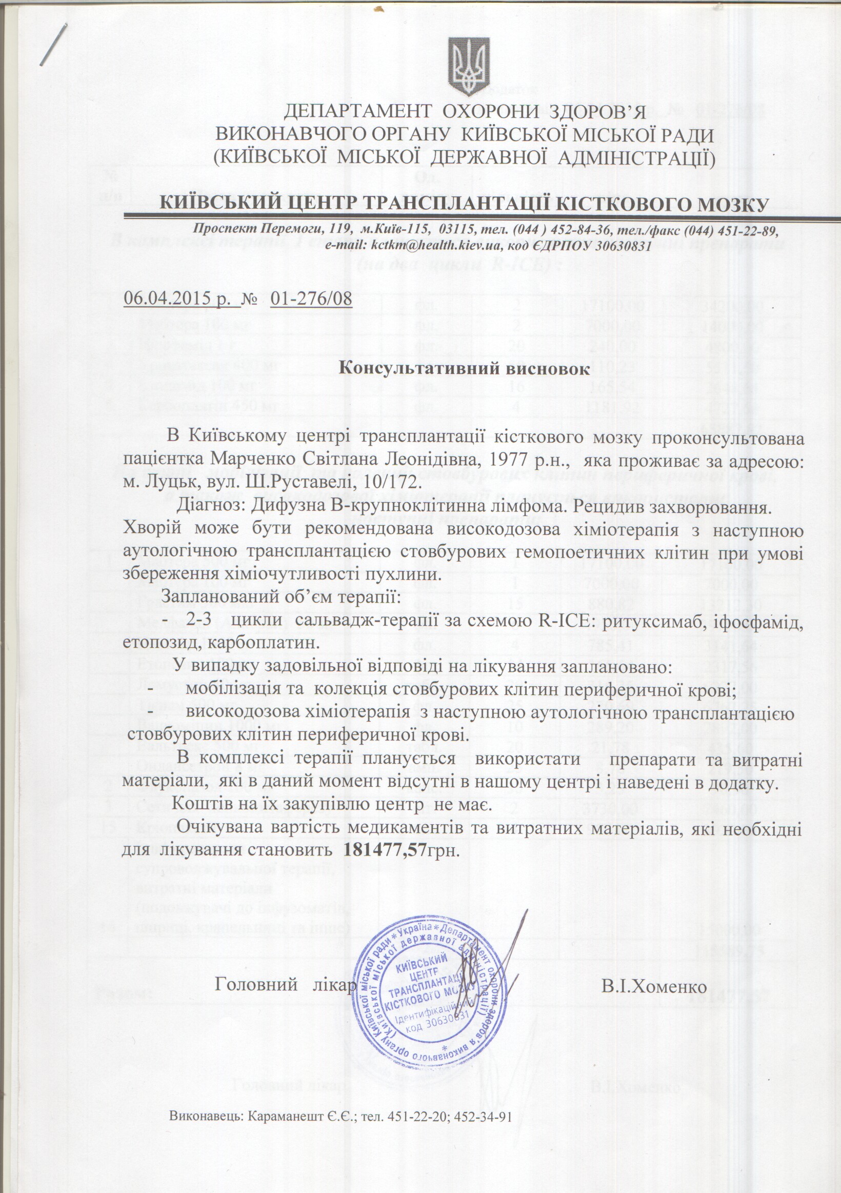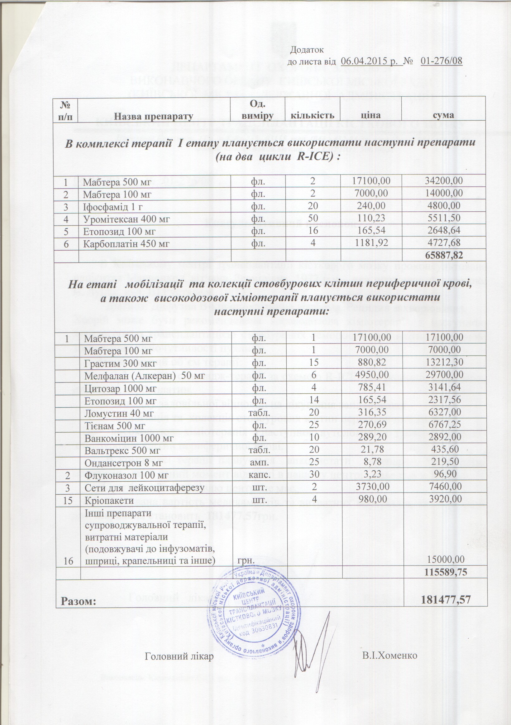 Лікарями встановлена очікувана вартість медикаментів та витратних матеріалів, які необхідні для лікування, лікування становить 181477 гривень.