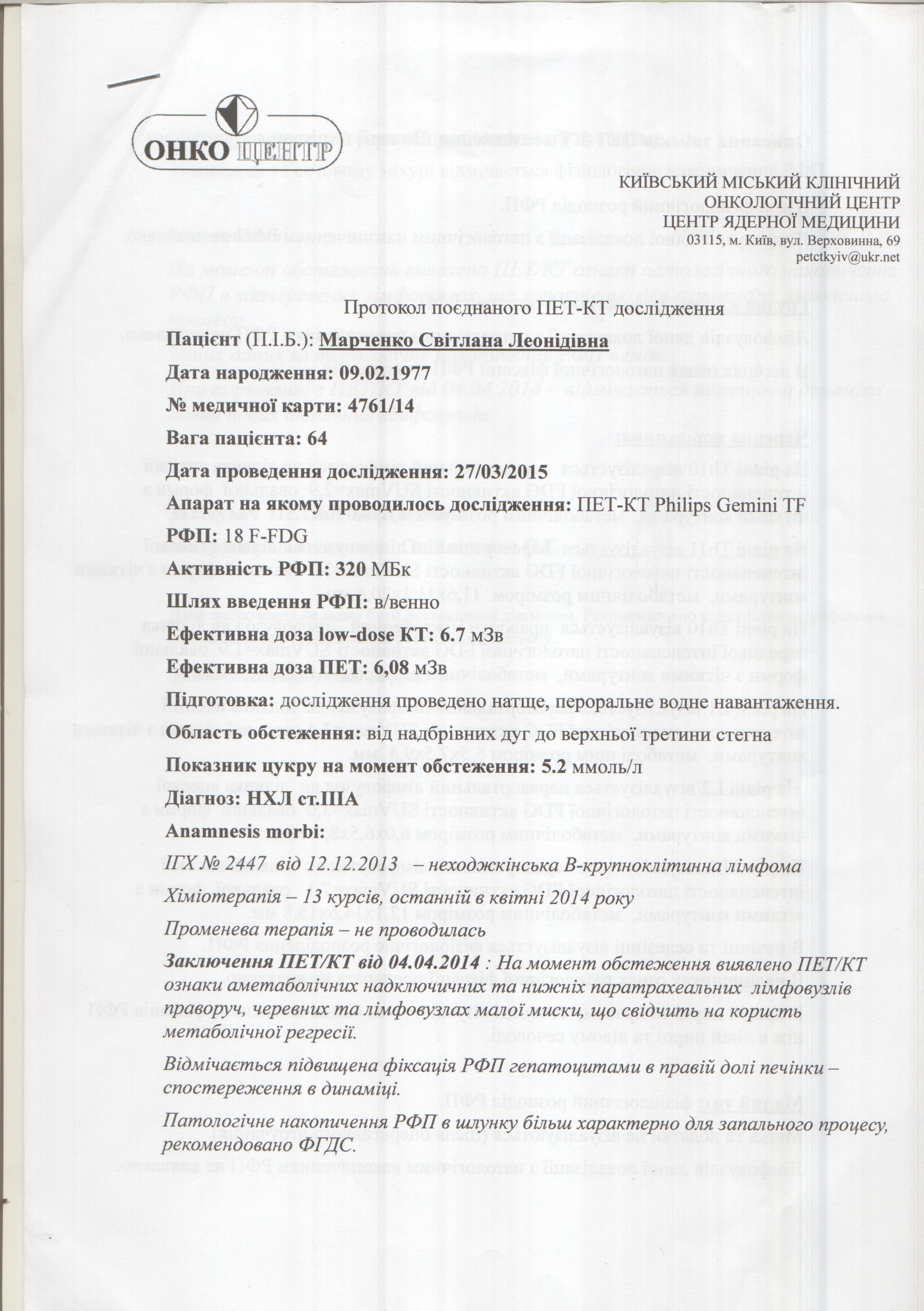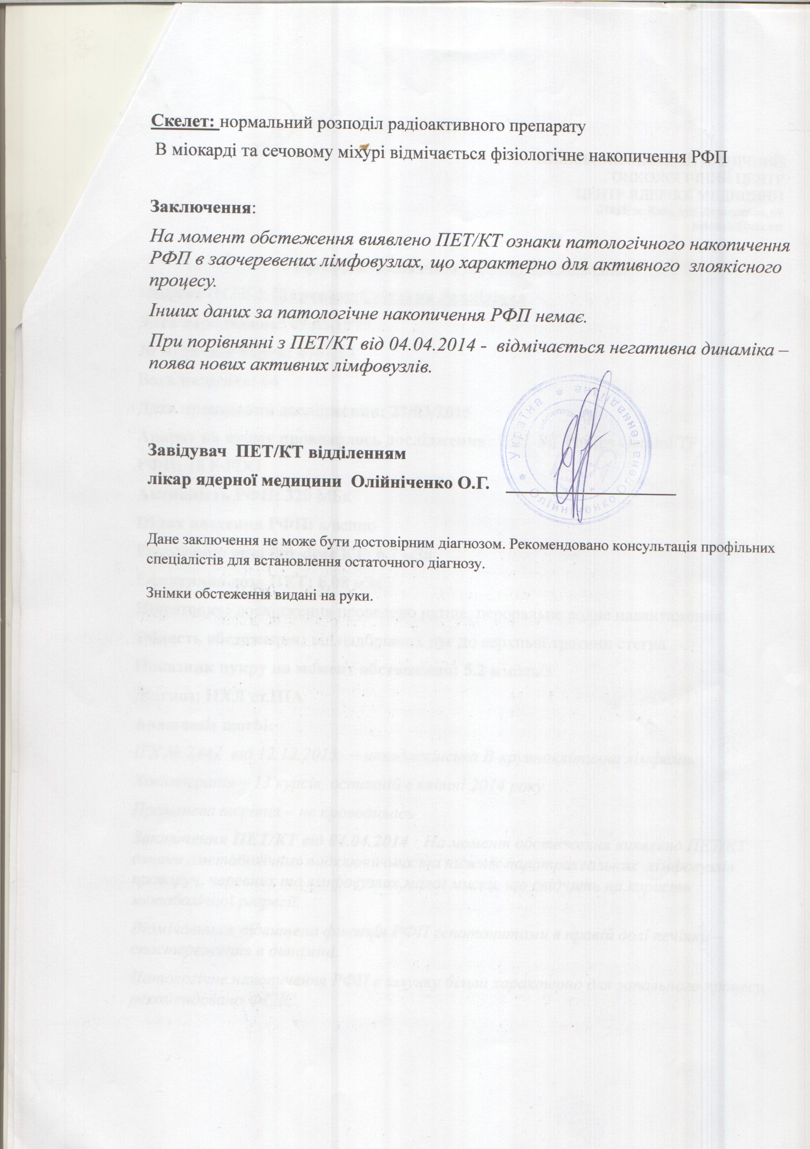 Диагноз: неходжкінська лімфома, дифузна В – крупноклітинна ІІІ ст. Рецидив.