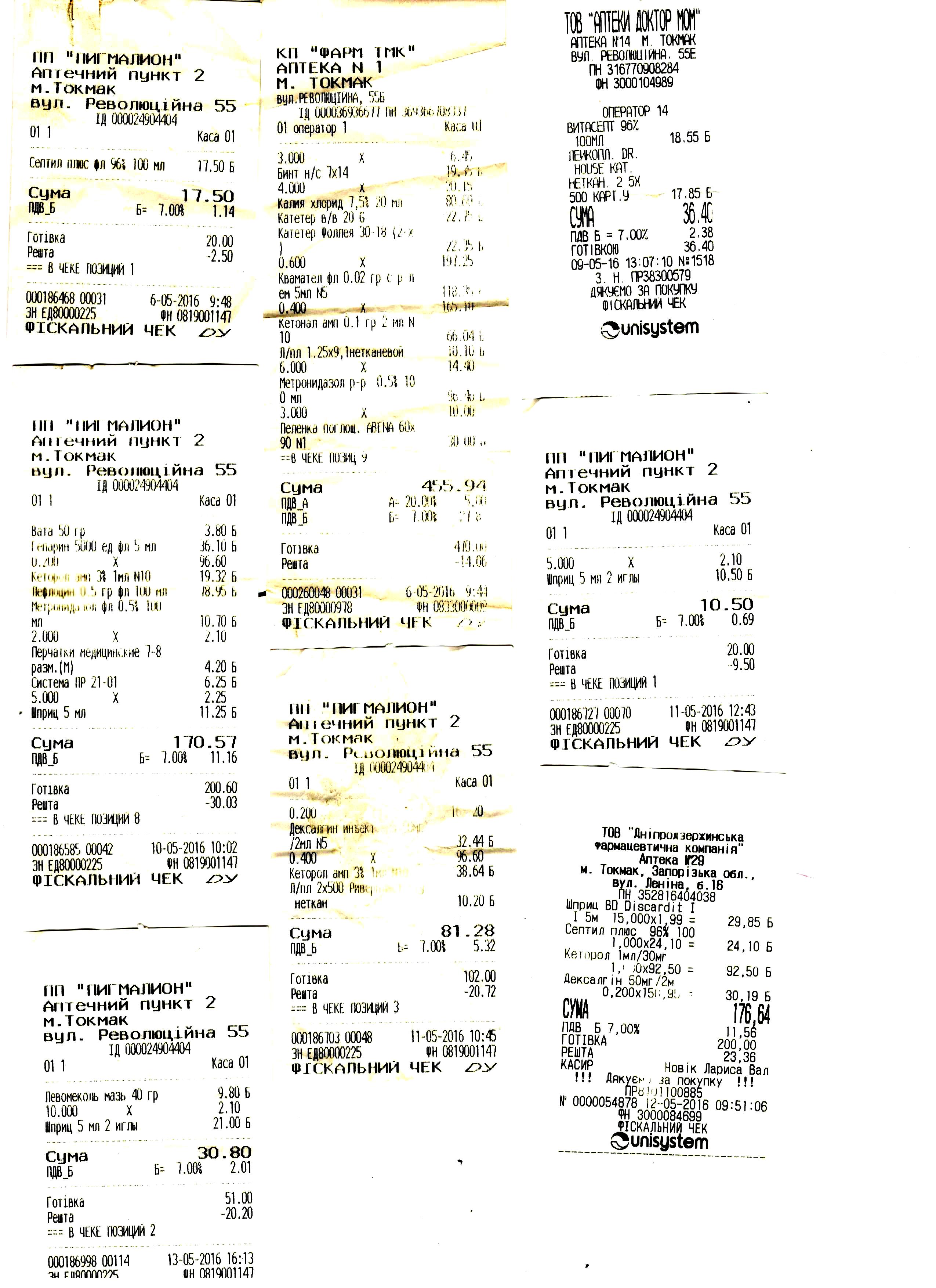 Май - июль 2016г. было затрачено около 7000,00 грн. Копии чеков прилагаются..