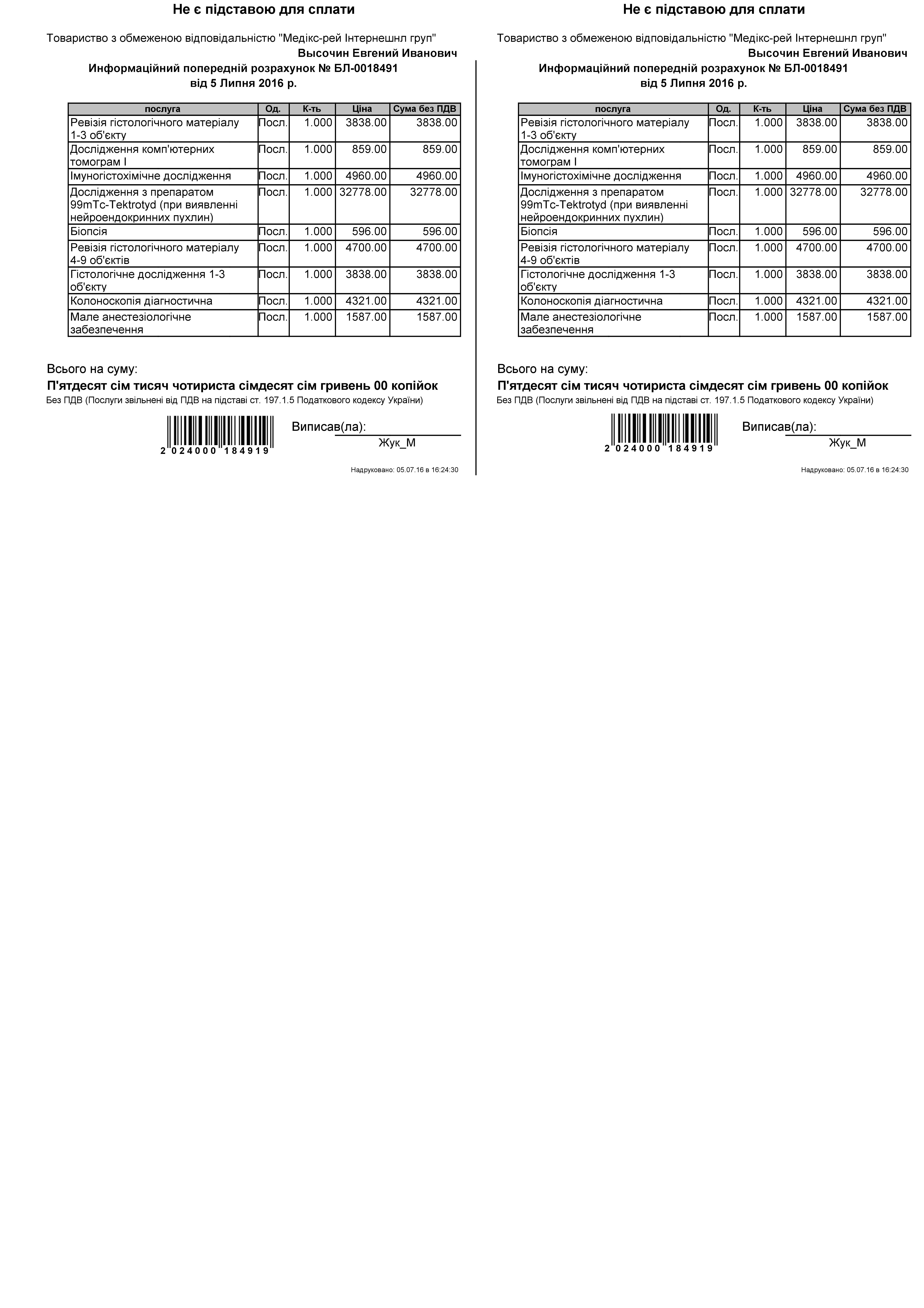 Счет за проведение исследований прилагается. Сумму необходимую на полное лечение я указать затрудняюсь, могу высылать счета по мере их поступления. А проблема с каждым днем усугубляется.