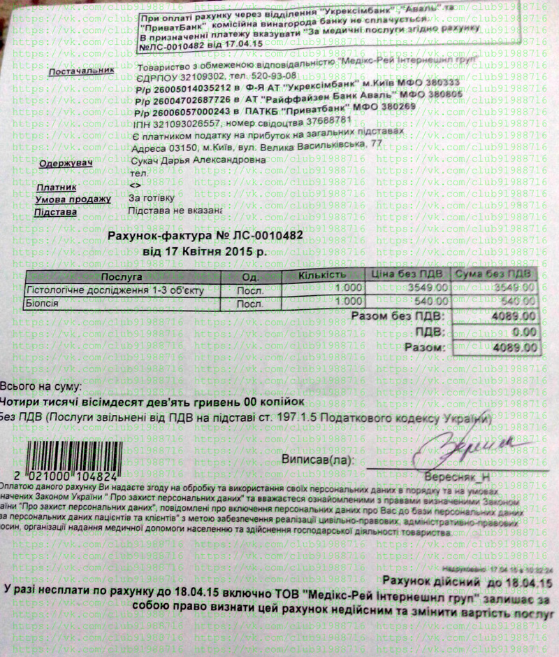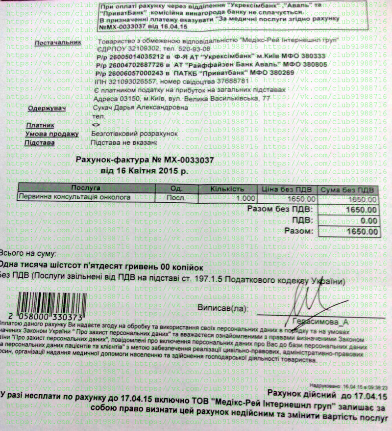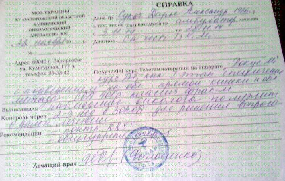 После 32-х дней лучевой терапии мне была предложена сложная операция, которая, несмотря на все риски, мой единственный шанс на жизнь. Вследствие моей врожденной физической патологии костно-мышечной системы операция может иметь различные осложнения, поэтому я приняла решение пройти еще одно более детальное обследование в одной из клиник города Киева.