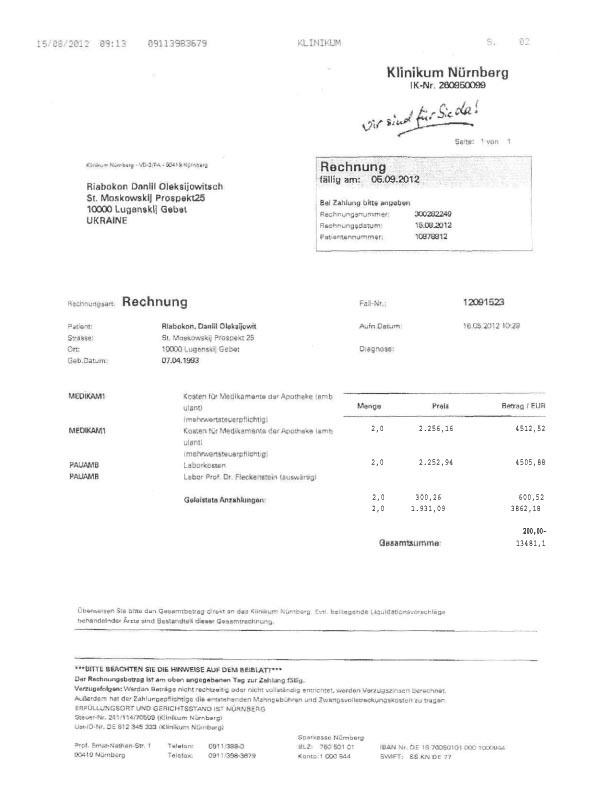 Проконсультировавшись с множеством врачей, было принято решение ехать на лечение в Германию, там мы находились год, прошли химиотерапию и сделали трансплантацию донорского костного мозга. В результате все лечение нам обошлось в 220 000 евро, собирали деньги всеми возможными способами, по близким, родным, знакомым, продали квартиру, и частично помогли немецкие благотворительные фонды.