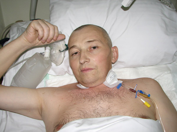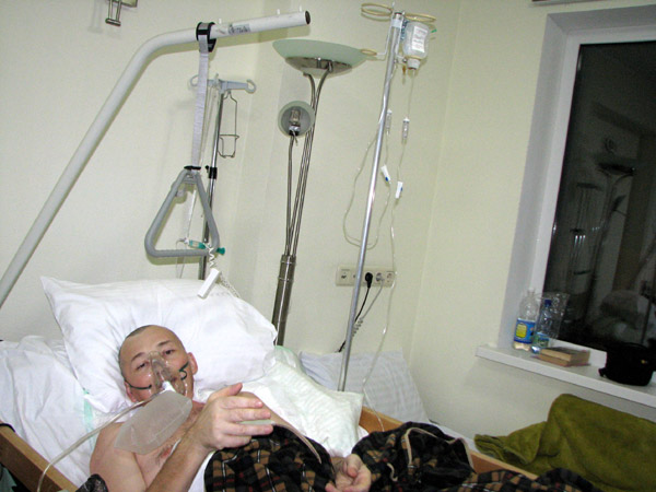 Мы собрали все деньги, и 26.09.2012 г. Андрею был проведен 1-й курс химиотерапии. Три дня он был между жизнью и смертью, боролся, но выжил. Правда, химия начала убивать не только опухоль, но и жизненно важные органы, был задет костный мозг... Ситуация усугубилось переломом ребра (которые под воздействием химиотерапии стали очень хрупкими), и сейчас Андрею очень тяжело дышать, т.к. ребра упираются в плевру и легкие, давят на них... Он не ходит уже почти месяц, дышит только через кислородную трубку, хотя анализы практически все в норме, кроме гемоглобина.