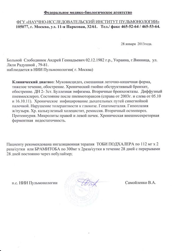 Диагноз: Муковисцидоз.