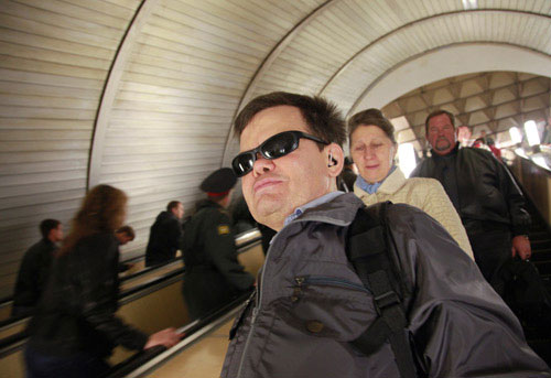 Идя по улице, Сергей палочкой для слепых находит опору в виде бордюра или забора и двигается вдоль. Найдя знакомый ориентир, он меняет направление, так, обтекая предметы на своем пути, Сергей доходит до цели путешествия. Однажды он попал под КамАз.