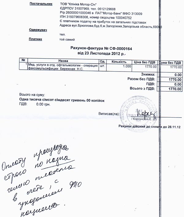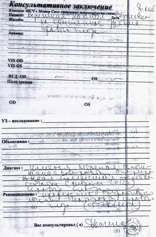 В этом году Наталии уже сделали 2 операции в клинике микрохирургии глаза г. Киева (в феврале и апреле), так как у нее было полное отслоение сетчатки и 100% слепота правого глаза. Это были очень сложные операции, которые на Украине делают только в г. Киеве и г. Одессе. С помощью операции Наталии вернули 10% зрения правого глаза, но при этом уплотнился и помутнел хрусталик (так подействовал силикон, введенный в глаз).