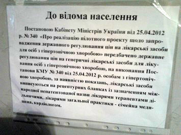 Первый шаг — визит в районную поликлинику, где терапевт должен выписать рецепт на лекарства. Мы направились в центральную поликлинику Заводского района. Надо отдать должное медицинскому персоналу: информация о том, что в Запорожье действует программа по удешевлению лекарств для гипертоников, вывешена там не только возле окна регистратуры, но и на всех этажах лечебного учреждения. Возможно, именно хорошая информированность привела к тому, что желающих получить заветный рецепт было достаточно много: в очереди к терапевту, помимо нас, выстроилось семь человек. После полутора часов изнурительного ожидания наконец-то попадаем в кабинет терапевта.