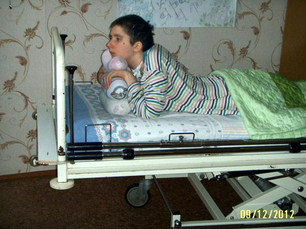 Мы летели на самолётах из Симферополя до Киева, а затем из Киева до Франкфурта в самолёте на обычных местах. Когда прилетели во Франкфурт, то встречающая сторона была просто ошеломлена, что Даша проделала этот путь, сидя в самолёте среди обычных пассажиров. В клинике все были поражены Дашинымм физическим состоянием после нахождения 2.5 лет в домашних условиях без профессионального медицинского наблюдения, у нее нет пролежней, закостенелостей в руках и ногах. По окончанию реабилитации были даны рекомендации о повторных ее курсах».