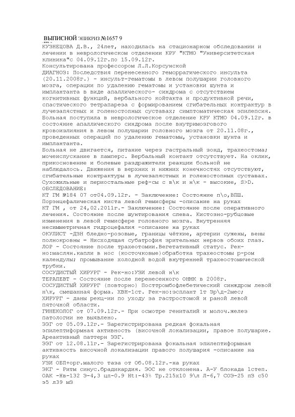 Медицинская выписка: 1 стр. 2 стр. 3 стр.