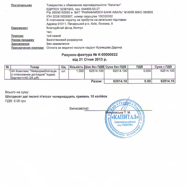 Сейчас настало время очередной реабилитации, денег на нее у семьи совсем нет. После длительного изучения возможности прохождения реабилитации в Украине была найдена только одна частная клиника «Оберег», она находится в Киеве, в ней есть инсультный центр, в котором занимаются реабилитацией больных в ХВС (Хроническое вегетативное состояние). Стоимость заявленной реабилитации 62 000 гривен. Мама, не сдерживая слез, просит у вас помощи. Помогите, пожалуйста, Зое вернуть доченьку к обычной жизни. Каждая реабилитация все больше приближает Дашеньку к жизни без особых ограничений.