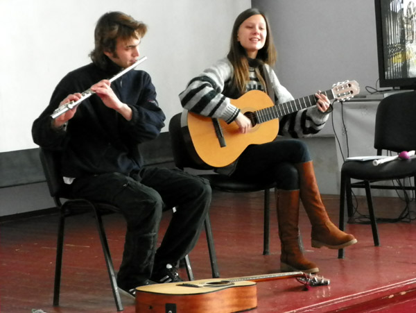 Финансовые возможности «Хелпуса» пока ещё не позволяют оказать ощутимую материальную помощь, но подарить тепло наших сердец этим людям нам вполне по силам. В субботу 26 января 2013 года мы решили провести импровизированный концерт в Веселовском интернате Запорожского района. Интернат находится на расстоянии всего 25 км от Запорожья, западнее трассы на Днепропетровск. Но утром в субботу наша поездка чуть было не сорвалась – сильная метель сделала сёла в стороне от трассы практически недоступными. Но мы рискнули, и стихия отступила! Наша машина творила чудеса и подобно бульдозеру рассекала глубокие сугробы на пути к Веселому. Мы достигли своей цели, и вскоре актовый зал интерната был полон воспитанницами самого разного возраста, а музыканты – волонтёры, студенты Запорожского музыкального училища – Алина и Олег – радовали всех своим талантом. Ребята пели песни, понятные всем, больным и здоровым.