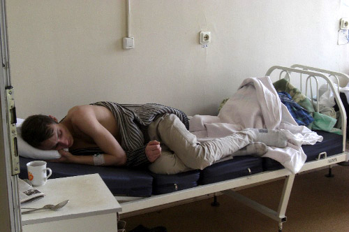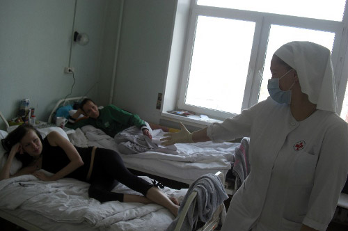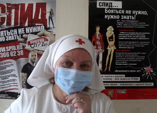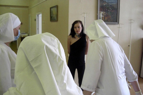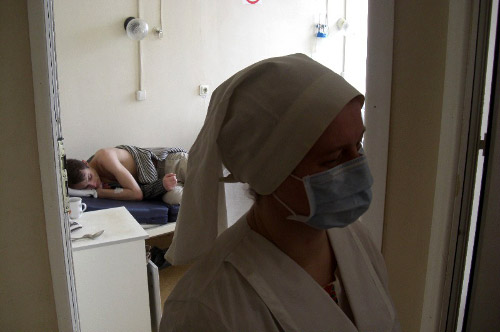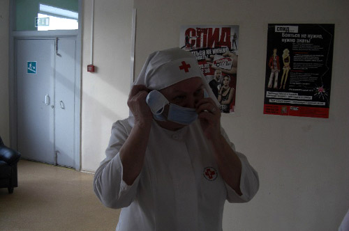 К больным надо идти через полчаса. А пока предстоит разобрать лекарства, помыть пол, провести инвентаризацию, заполнить истории посещений, где подробно описано состояние каждого подопечного и то, в чем он нуждается. Также нужно разложить: шприцы – на вторую полку, перчатки по размерам – на третью, дезинфицирующие средства и перевязочные материалы – в шкаф. Уточняют график дежурств, короткое чаепитие – и можно отделение. Меня переодевают во все одноразовое и белое, и мы стайкой в белых халатах покидаем недра подвала, продвигаясь к девятому этажу. Отделение для ВИЧ-инфицированных больных находится именно здесь. Кстати, при этой же больнице располагается и Федеральный научно-методический центр по профилактике и борьбе со СПИДом.