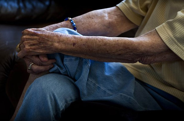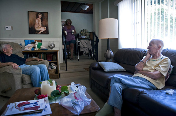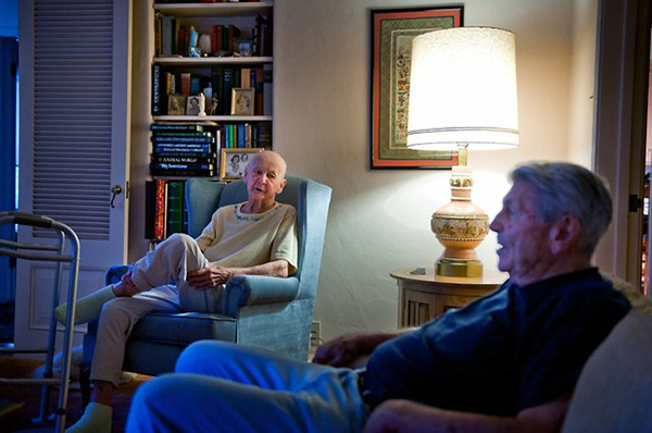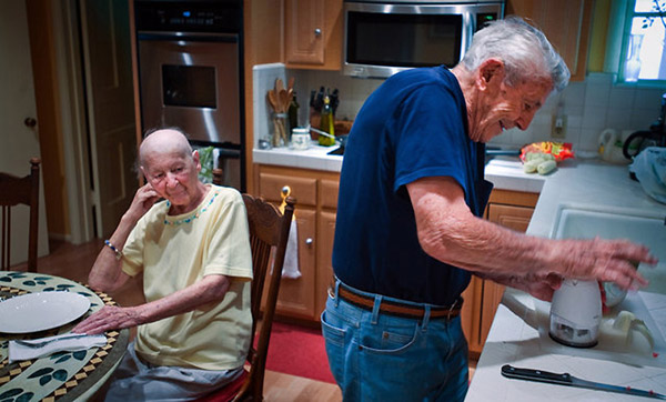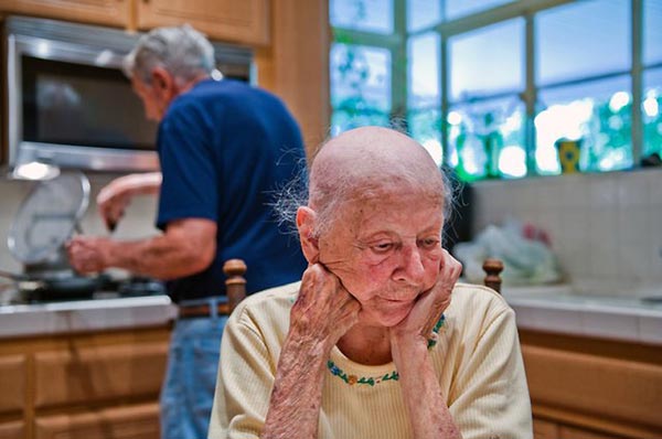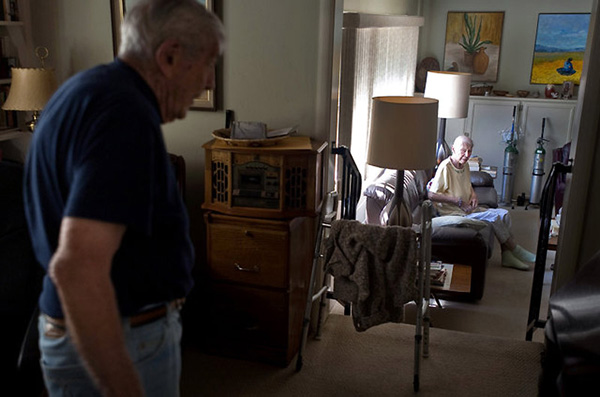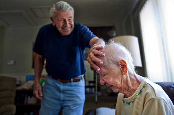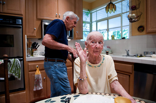 1. Джин Бонти успокаивает свою жену Бобби, положив руку на ее облысевшую от химиотерапии голову. Джину 90 лет, и он заботится о своей 89-летней Бобби – готовит еду, убирает, делает покупки и следит, чтобы она питалась правильно и регулярно. С тех пор, как Бобби сделали диагноз рак яичников, ей начали делать химиотерапию, она потеряла большую часть волос, но самое страшное, что у нее невропатия в левой руке и ногах, так что теперь она не может еще и ходить. Новая гериатрическая онкологическая клиника (для пациентов 75 лет и старше) старается помочь своим пожилым пациентам, больным раком, чтобы они могли прожить остаток дней счастливо, не ощущая запаха больницы. (Manny Crisostomo)