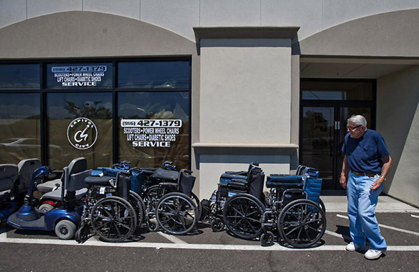 11. Джин выбирает мопед для своей жены Бобби в специальном магазине для инвалидов в Сакраменто. Бобби пользуется инвалидным креслом, но Джин надеется приобрести для нее мопед, когда она поправится, чтобы делать покупки или ездить в их коттеджный поселок в Лэйк Тахое. (Manny Crisostomo)