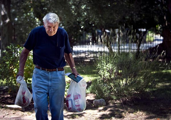 2. Шерри Дженнинг несет еду из ресторана фаст-фуд «Starbucks Frappacino» своим родителям Джину и Бобби Бонти. (Manny Crisostomo)