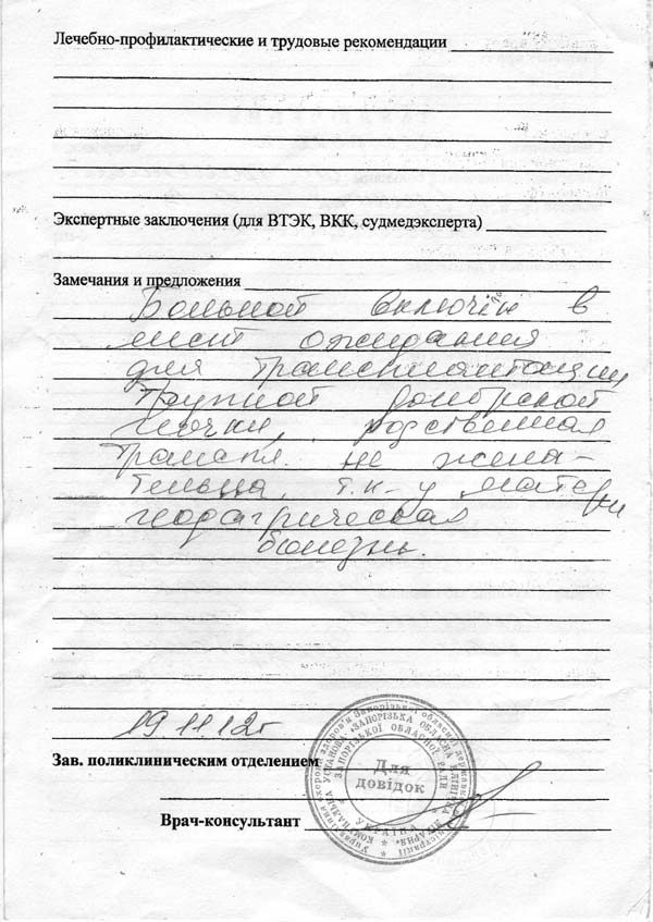 Медицинское заключение: стр.1 стр.2