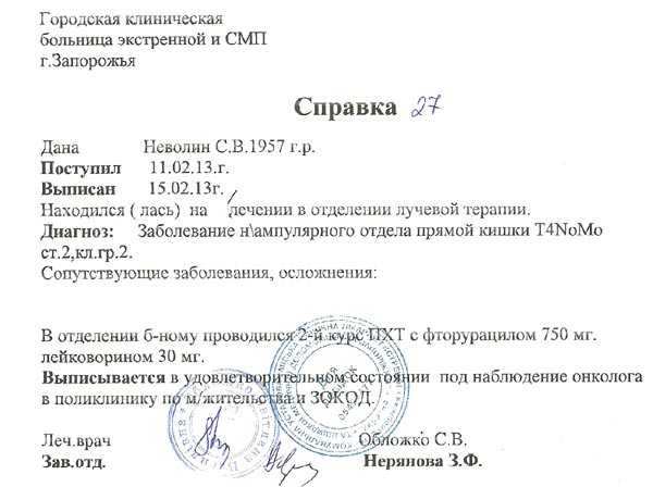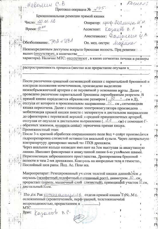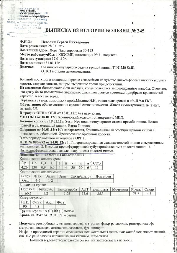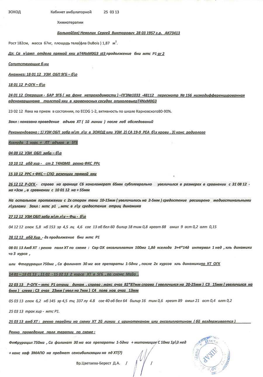 Диагноз: Рак прямой кишки, метастазы в левое легкое.
