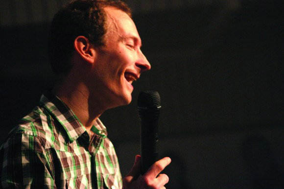 Еще через несколько минут, забыв о своих внутренних барьерах, зал смеется, одобрительно гудит и аплодирует. Шведский писатель, музыкант и юморист Юнас Хельгессон через слово отпускает шутки в свой собственный адрес.