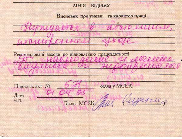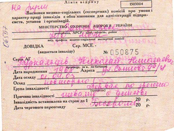 Удостоверение об инвалидности: 1 стр. 2 стр.