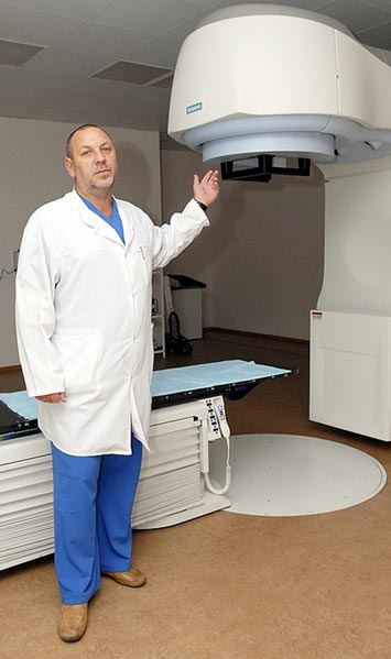Александр Клюсов: «Ежегодно в нашем онкоцентре проводят более шести тысяч сложных операций, 15 тысяч курсов химиотерапии и около четырех тысяч — лучевой терапии с помощью вот этого линейного ускорителя»