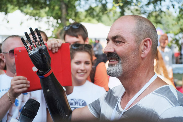 Найджел Экланд: «Без протеза я чувствую себя беспомощным. Без него моя жизнь превращается в постоянную борьбу: не могу толком помыться, одеться и приготовить еду. Как только он включается — я улыбаюсь. Шесть лет я ходил с ампутированной под локоть рукой и люди на улице смотрели на меня брезгливо. Теперь все вокруг подходят, здороваются, задают вопросы. Протез помогает мне преодолеть социальные барьеры и чувствовать себя полноценным».