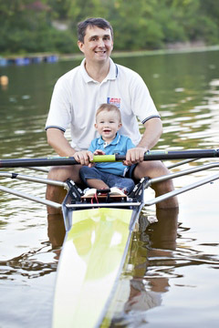 «Мы с сыном уже ходим по Днепру в лодке-двойке», — рассказывает Олег. На этом фото Жене всего годик