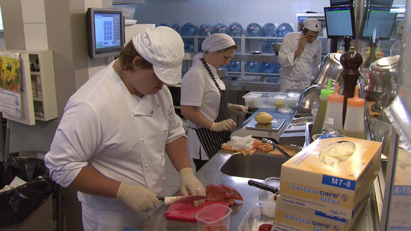 Сопровождению людей с особенностями развития повар Марина Долгова никогда не училась. "Он месяц учился на другой кухне не со мной, а потом пришел сюда, и тут я его стала учить. Так получилось", — сказала она.