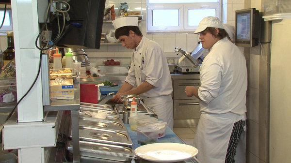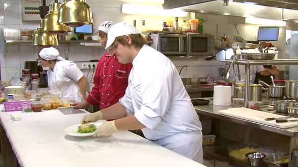 На кухне он работает третий месяц. В основном помогает поварам, но уже больше десятка блюд может приготовить от начала до конца, знает не только ингредиенты, но и помнит их необходимое количество в граммах, шинкует овощи профессиональным движением.