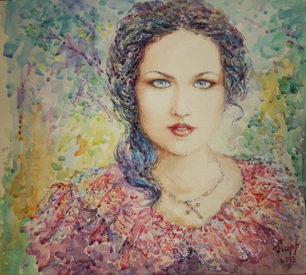 - Чувства. Рисуя чей-то портрет, я люблю того, кого изображаю. Порой мне хочется коснуться лица на портрете или протянуть руку и поправить локон волос. С последней своей картиной «Гордая», я даже разговаривала. Может кому-то это покажется странным, но таковы были мои порывы. И вышла она даже чем-то живой, смотрит на зрителя с любого ракурса, как Джоконда.