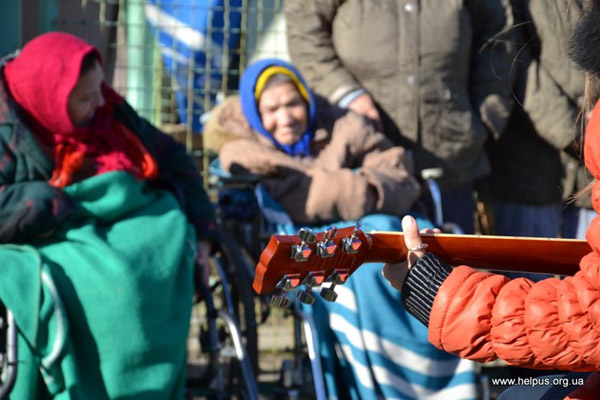 Импровизированный концерт под открытым небом устроили запорожские волонтёры для подопечных интерната, имеющих трудности с передвидением