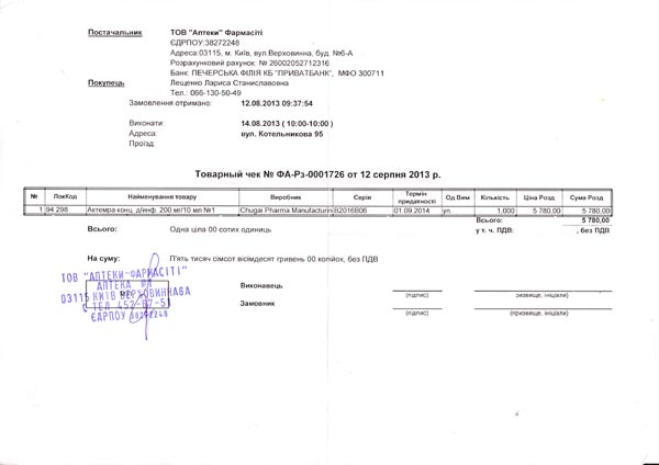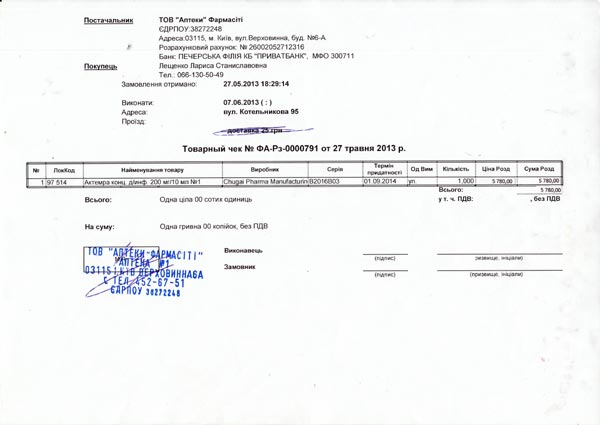 Сами мы собрать в месяц такую сумму просто не можем. Обращались куда только могли, все помогали по мере возможности. Сейчас Аня уже приняла 7 капельниц и я могу сказать, что действительно состояние улучается. Стоимость капельницы 5780 грн. (капать нужно ежемесячно), не менее 2 лет, так как состояние очень тяжелое, болезнь поразила все суставы.