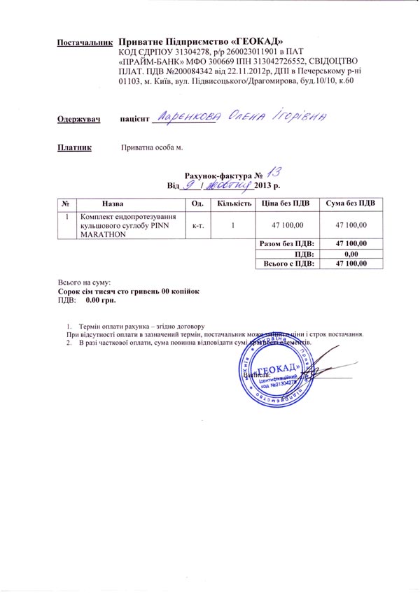 Операции бесплатны, только надо купить суставы – которые стоят 40 000 гривен, за один сустав, а мне необходимо 2. Необходимые мне суставы в Украине не производятся.