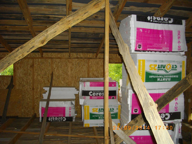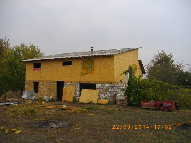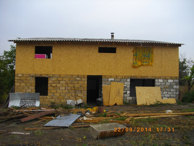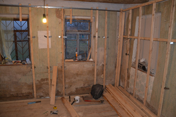 Главная комната в домике – идёт обшивка стен гипсокартоном