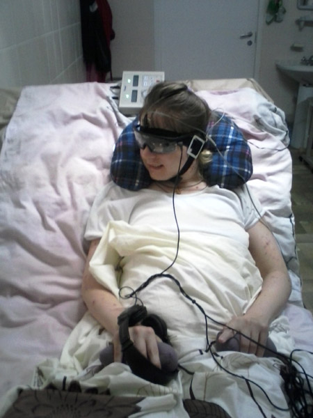 Сейчас Юля уверенно держит голову, сидит. С помощью реабилитологов делает первые шаги и с поддержкой проходит около 30 метров по несколько раз в день. К сожалению, проблема со зрением остается открытой, Юля различает светлое и темное время суток. Дальнейшая диагностика функции зрения возможна только после обследования с помощью специальной аппаратуры. Юля всех помнит, реагирует на все разговоры и шутки, общается с родными по телефону. На занятиях Юля очень усердно выполняет все указания инструкторов и старается добиться большего.