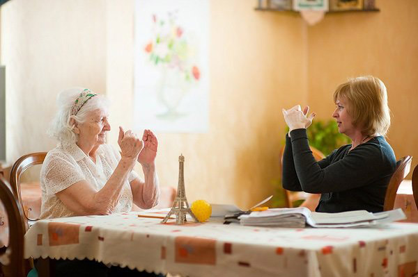 С пожилыми людьми, как и с детьми, прежде, чем что-то сделать, нужно рассказать, что вы будете делать. Нельзя стоять против света, когда ты разговариваешь с пожилым человеком, - он тебя не видит, слабое зрение Нельзя входить в комнату без стука, чтобы не испугать. Мы учим не только методике, но и этике общения.