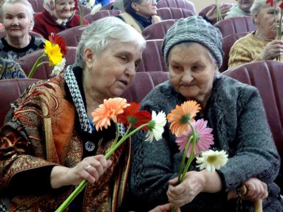 И как же, оказывается, обрадовались наши бабушки живым цветам!